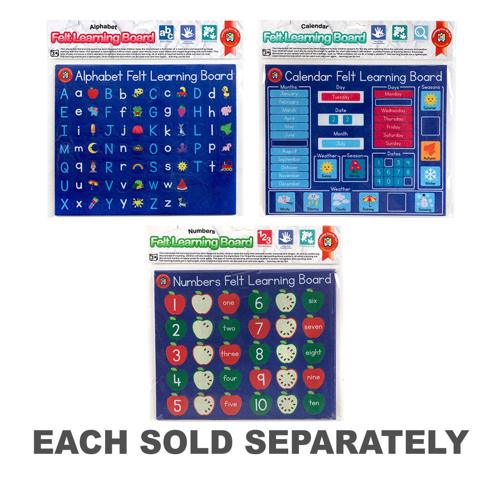 Felt learning boards are lightweight, simple to clean, and ideal for constant, everyday use. With the Felt Learning Board Alphabet, learning can indeed be a delight! Stimulate your child's alphabetic understanding and linkage abilities with this captivating, hands-on educational tool.