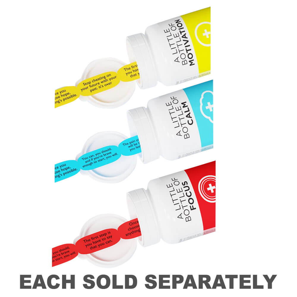 - Your bottle contains 52 pill-shaped paper quotes that are designed to improve your mental focus and train your concentration!
