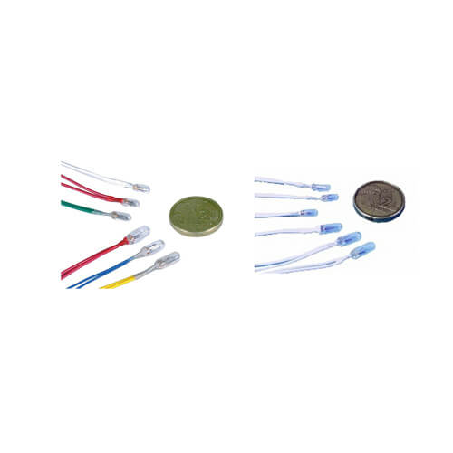 A large range of various sizes and voltages of mini lamps. Supplied with wiring cable pre-connected.