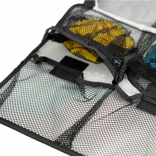 - 16 mesh Hook-and-Loop Fastener Pockets and 16 matching mesh zippered bags.