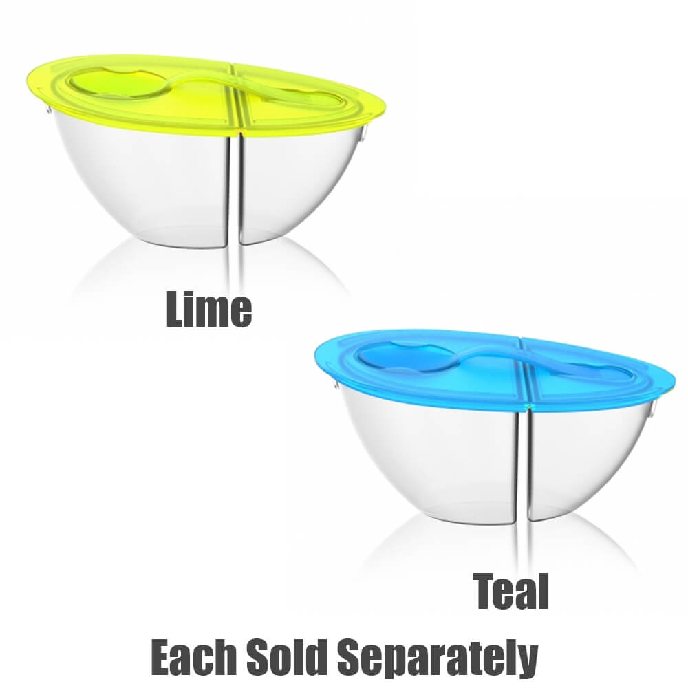 • Features two compartments with a spoon in the lid