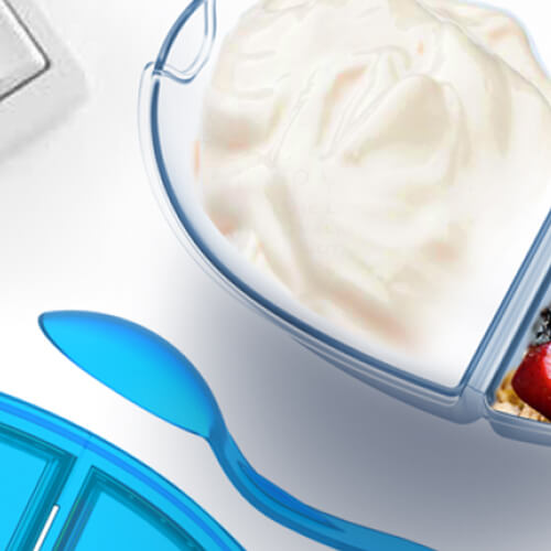 • Remove lids and flip the smaller compartment over into the yoghurt