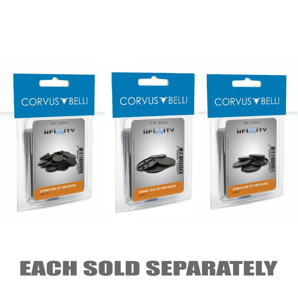 • Pacote de 20 bases de 25 mm. Projetado exclusivamente para miniaturas infinitas, com marcas de linha de incêndio exibidas na base.