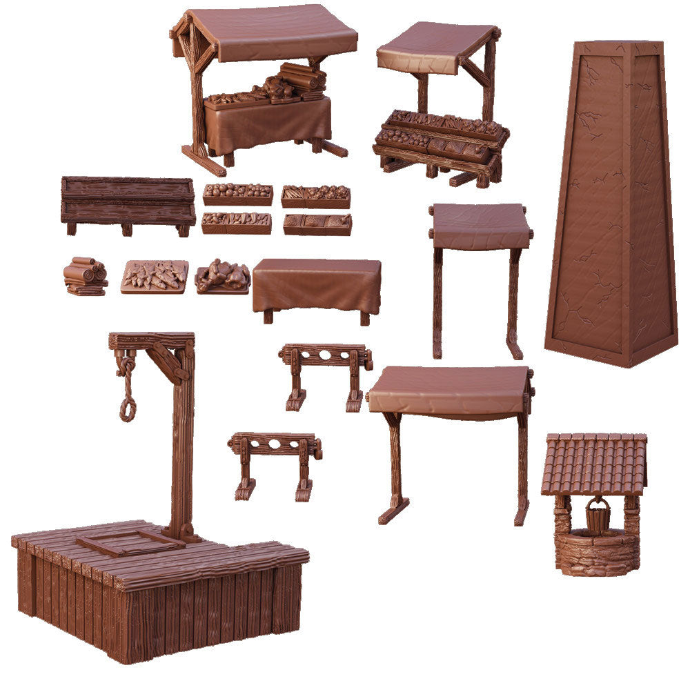 • 27 peças de miniaturas pré-coloridas da Village Square