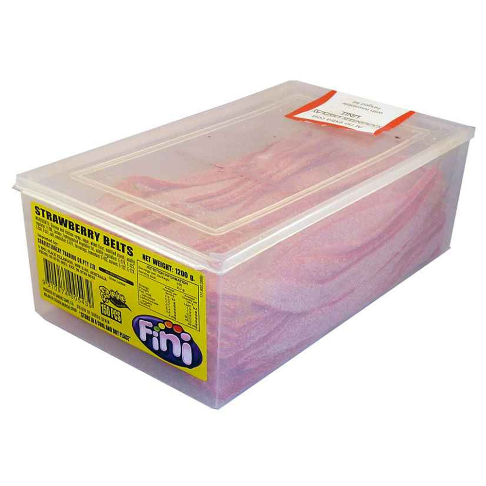 Fini jordgubbsbälten är en läcker och livlig godisbehandling som ger en skur av söt jordgubbsmak i varje bett. Dessa mjuka, chewy -bälten är en älskad klassiker, perfekt för att tillfredsställa dina söta tandtrang.