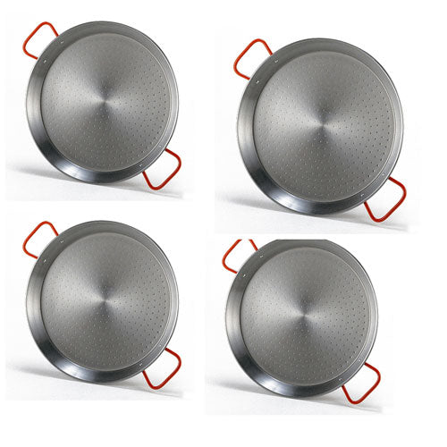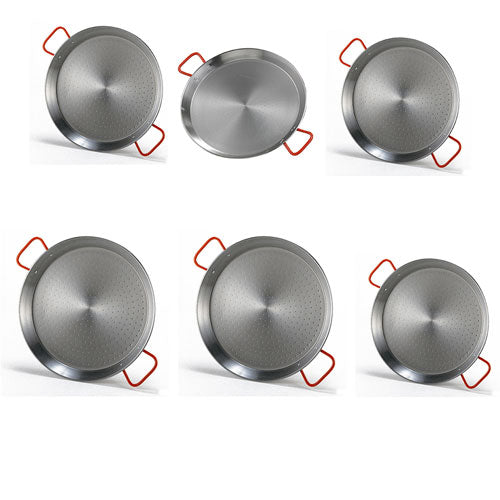 Skapa legendarisk paella med denna autentiska spanskgjorda panna för en högsta traditionell matlagningsupplevelse. Njut av att göra Spaniens mest ikoniska recept, som ursprungligen uppfanns av landsbygdsarbetare och förberedde utomhus med säsongsgredienser. Oavsett om du skapar ett vegetarian, skaldjur eller blandat köttmästerverk, är Garcimas traditionella paellapannor utformade för att göra matlagning denna läckra maträtt till en bris. Den runda, breda, låga designen av paellapannan gör att maten snabbt kan laga över en hög värme, de vinklade sidorna gör ingredienser tillgängliga för omrörning och deras stora handtag låter hemmet laga mat säkert och enkelt överföra mat från spis till bord. Denna omedelbart igenkännliga rödhanterade, handspunna panna är gjord av tunt, högt kolpolerat stål som snabbt svarar på temperaturförändringar. Lämplig för användning på elektriska och gaskantar, såväl som utanför på en öppen låga eller kolgrill.