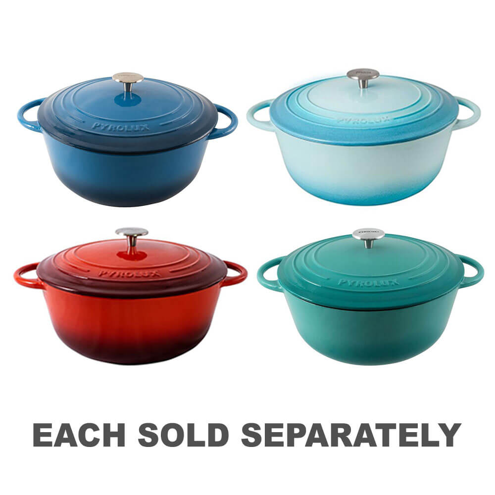 Denna Pyrochef 26cm/5 liters runda franska ugn är perfekt för grytor, grytor, soppor, stek, searing, sautéing och bakning, din enda stop kruka för läckra måltider. Handlar enkelt från alla spisar till ugn till bord för näringsrika skapelser. Koka på låg till medelhög värme för att skapa perfekta rätter. Konstruktionen av gjutjärnskonstruktionen behåller värmen för jämn matlagning utan hotspots. Denna show-stjäla runda franska ugn kommer att hålla dina smakrika rätter varmare vid bordet längre. Med sin Ultra Smooth 3 -lagers emaljbeläggning är detta köksredskap hållbart och gör lätt arbete med rengöring.
