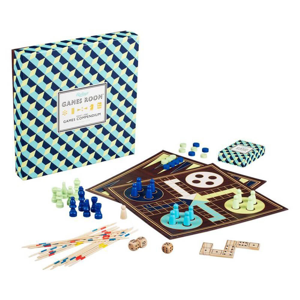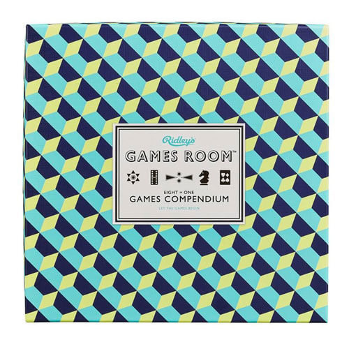 Ha en klassisk spelkväll med det här spelkompendiet från Ridleys spel! Åtta-i-ett-spelkompendium. Förpackad i geometrisk tryckbox. Innehåller backgammon, schack, kinesiska checkar, domino, utkast/kontroller, ludo, pick-up pinnar, spelkort och instruktioner.