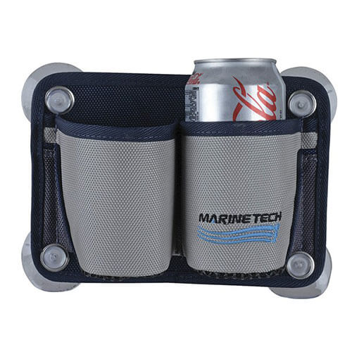 Detta är en mångsidig och hållbar dryckhållare för att montera i din båt eller husvagn. Tvillingplatsen passar ett par burkar eller stubbies eller något upp till 65 mm i diameter. Den tuffa ballistiska nylonet ger styrka som behövs för omfattande användning och erbjuder fortfarande en mildare dämpning över plast som plast. En meshed bottendesign undviker uppbyggnad av kondensation.